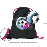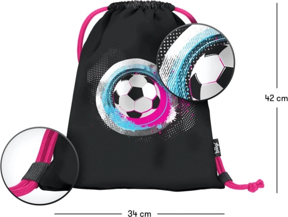 Praktische sportzak voor pantoffels of gymschoenen in roze Voetbal-design van het merk BAAGL. Gemaakt van stevig, afwasbaar materiaal en sluit met treksluiting met stevige koorden, die tevens comfortabel dragen op de rug mogelijk maken.