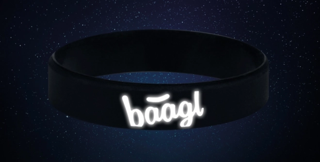• Siliconen armband in zwarte kleur met een lichtgevend BAAGL-logo.