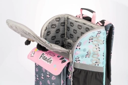 De BAAGL Zippy Panda schooltas is ontworpen voor groep 3–4. Hij biedt een verstevigd corpus, een doordachte indeling van de binnenruimte en een nieuw klapsysteem, waarmee het kind eenvoudig bij alle spullen kan vanaf de schoolbank. Dankzij het schuifbare ERGO ADJUSTABLE SYSTEM kunnen de riemen precies worden afgesteld op de lengte van het kind, zodat de tas de hele dag comfortabel zit.