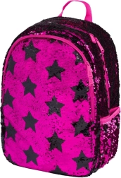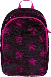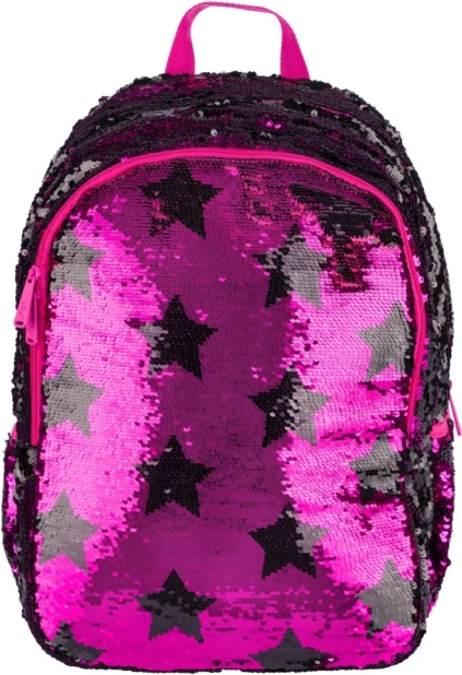 Roze pailletten en zwarte sterrenpatronen geven de rugzak een opvallende stijl, ideaal voor kinderen die willen opvallen.