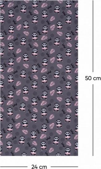 Universele maat voor volwassenen en een aantrekkelijk design met panda’s en roze accenten op een grijze achtergrond dat elke outfit afmaakt.