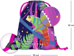 De praktische BAAGL-tas met kameleonmotief is ideaal voor schoenen en kleine spullen in je vrije tijd. Gemaakt van een stevig, afwasbaar materiaal en voorzien van een treksluiting met stevige koorden, die tevens comfortabel op de rug dragen mogelijk maken.