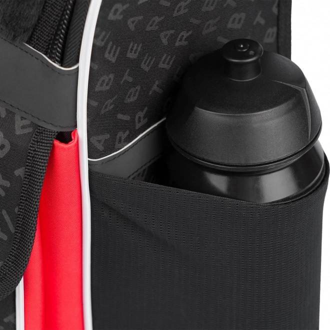 Het kantelmechanisme van de opening geeft direct vanaf het bureau toegang tot de inhoud van de tas. De interne organizer met elastiek en het vak met lesrooster houden schoolspullen overzichtelijk op hun plek.