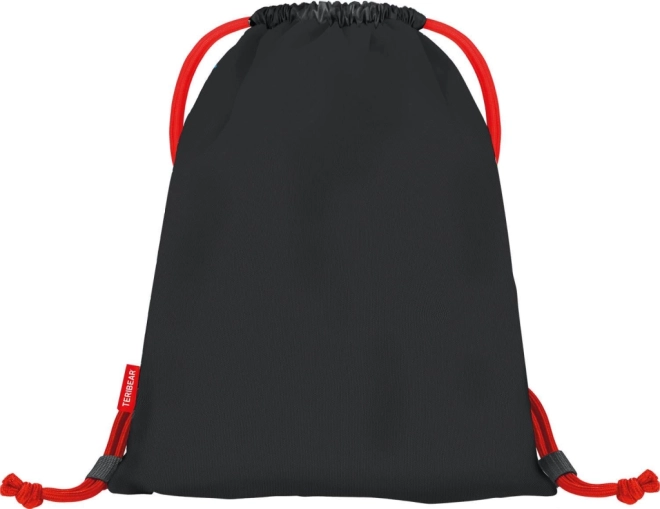 De zwarte gymsack is versierd met witte TERIBEAR-beertjes – een stijlvolle accessoire voor school en vrije tijd.