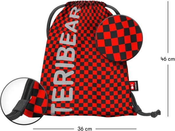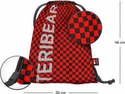 De treksluiting met stevige koorden sluit de zak veilig af en maakt tegelijkertijd comfortabel dragen op de rug mogelijk. Het stijlvolle rood-zwarte schaakbordmotief met de tekst TERIBEAR geeft je outfit een opvallende look.