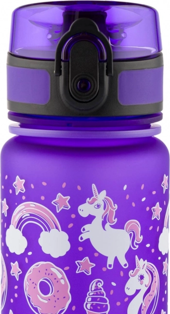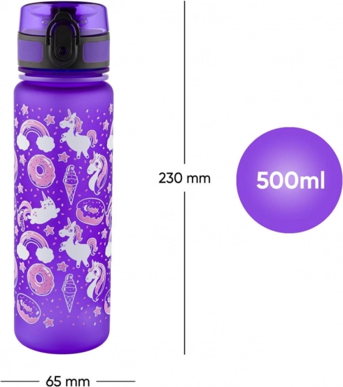 De fles is versierd met schattige eenhoornmotieven die elk kind zullen waarderen. Het combineert een speels uiterlijk met frisse kleuren.