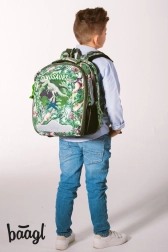 De Schoolrugzak Baagl Dinosaurussen is ontworpen met een robuust en verstevigd lichaam dat schoolspullen beschermt als een schild. Tweekamersysteem zorgt voor een optimale verdeling van het gewicht, waarbij het voorste vak een praktische organizer, zakje voor kleinigheden en een karabijn voor sleutels bevat.