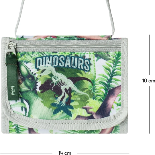 Stijlvolle nekportemonnee met een opvallend dinomotief, ideaal voor kinderen naar school, clubs en uitstapjes. Dankzij de stevige textiele afwerking is hij bestand tegen dagelijks gebruik en blijft hij toch licht en comfortabel om te dragen.