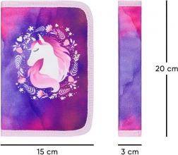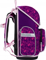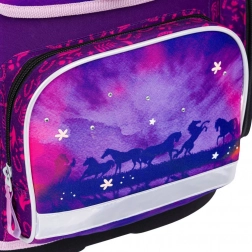 Stijlvolle schoolset met paardenmotief voor jonge scholieren vanaf groep 3, inclusief ergonomische schooltas, ruime etui en praktische gymsack voor schoenen. De schooltas biedt ergonomisch gevormde rug en een verstelbaar ERGO ADJUSTABLE SYSTEM voor een perfecte pasvorm, magnetische Fidlock-sluiting voor eenvoudig openen, reflecterende elementen voor veiligheid en laag gewicht onder 1.200 g. De set blinkt uit door hoogwaardige afwerking, waterafstotende materialen en een prachtig paars-roze design met paardenmotieven.