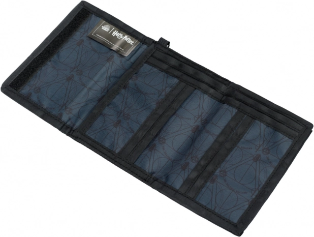 Deze Harry Potter-portemonnee met het motief van de Relieken van de Dood is niet alleen stijlvol, maar ook zeer praktisch. Hij is gemaakt van duurzaam textielmateriaal dat een lange levensduur garandeert. De portemonnee heeft een klittenbandsluiting, wat zorgt voor gemakkelijke toegang tot de inhoud en tegelijkertijd een veilige opslag van je waardevolle spullen.