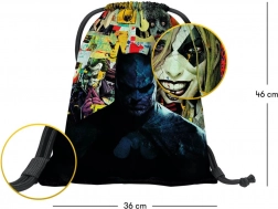 De zak is voorzien van een fascinerend grafisch ontwerp met een krachtige illustratie van Batman en kleurrijke personages en symbolen.