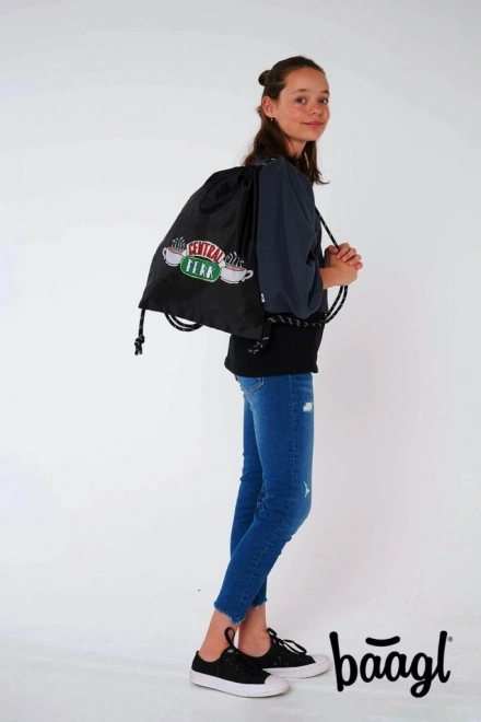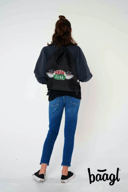 Elegante zwarte zak met het 'Central Perk'-logo, een geweldige keuze voor fans van de serie Friends. Perfect voor het meenemen van persoonlijke spullen.