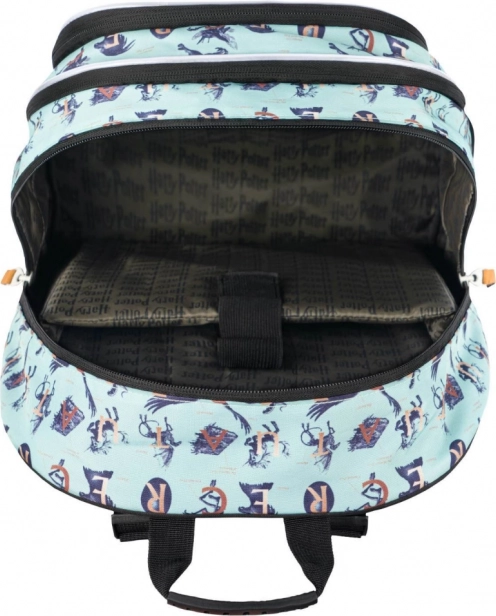 Stijlvolle schoolset met HARRY POTTER-motief bevat een ergonomische CORE-rugzak met een inhoud van 25 l en een gewicht van slechts 900 g, een stevige etui en een praktische gymzak. De rugzak heeft 3 vakken met organizer, een vak voor een 15"-laptop, mesh zijvakken, waterafstotend materiaal en reflecterende elementen voor extra veiligheid.