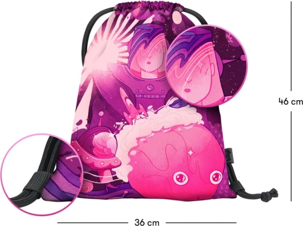 Val op met een originele kosmische look en praktische eigenschappen in één. Deze textielen zak is een uitstekende keuze voor school, gym en uitstapjes. Dankzij het duurzame, gemakkelijk afwasbare materiaal doorstaat hij dagelijks gebruik en houdt hij je spullen veilig.