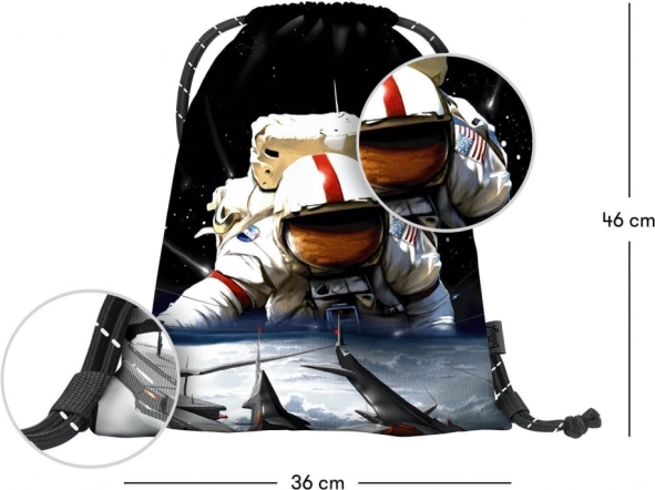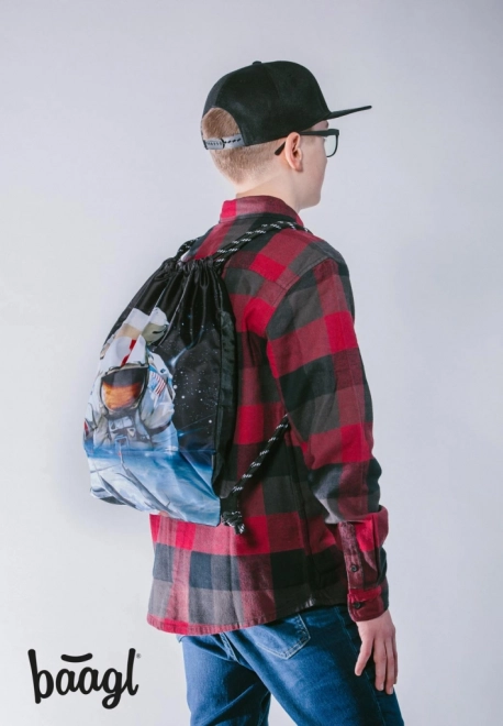 Stijlvolle Baagl eARTh-zak met astronautmotief van Caer8th, ideaal voor schoenen en kleine spullen voor je vrije tijd. Biedt een stevig, afwasbaar materiaal, betrouwbare trekkoordsluiting en comfortabel dragen op de rug dankzij sterke koorden.