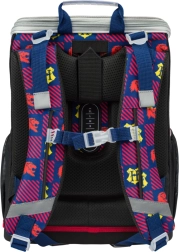 Binnenin vindt u een transparant vak met lesrooster en een doordachte organizer met elastiek om schriften en boeken te fixeren. De zijdelingse meshvakken bieden plaats aan een drinkfles, het geïsoleerde voorvak met gesp houdt de lunch of kleine spullen op hun plek. Sterke waterafstotende materialen, een stabiele bodem en reflecterende elementen verhogen de duurzaamheid en veiligheid bij dagelijks gebruik.