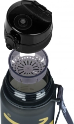 Deze lichte en stevige fles van gecertificeerd tritan zorgt de hele dag door voor comfortabele hydratatie. Dankzij het veilige, vergrendelbare deksel lekt er geen druppel en met de geïntegreerde zeef maak je eenvoudig fruitlimonade of thee, zonder dat stukjes in je keel komen.