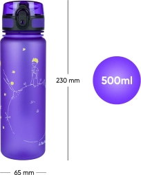 Lichte en duurzame tritan drinkfles met het motief van De Kleine Prins met een inhoud van 500 ml, ideaal voor school, training en uitstapjes. Voorzien van een vergrendelbare dop tegen lekken, een praktisch zeefje voor fruit of thee en een comfortabel draaglusje. Gemaakt van veilig tritan zonder BPA, PVC en ftalaten, zonder plasticgeur.