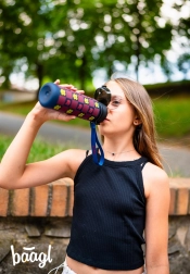 De praktische draaglus vergemakkelijkt het meenemen en de duidelijke schaalverdeling op de fles helpt je de vochtinname de hele dag bij te houden. Door de fles steeds opnieuw te gebruiken verlaag je het verbruik van wegwerpplastic en bescherm je de natuur.