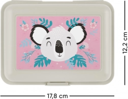 Stijlvolle en praktische lunchbox met een motief van een jonge koala, ideaal voor kinderen. Veilig sluitsysteem met een clip zorgt ervoor dat de inhoud op zijn plaats blijft.