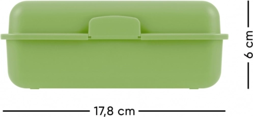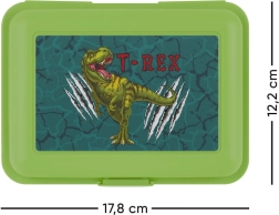 Stijlvolle lunchbox met T-Rex motief is ideaal voor kleine en grote avonturiers. Deze groene plastic box is uitgerust met een praktische sluiting met één slot en een scheidingswand voor eenvoudige organisatie van voedsel. Gemakkelijk mee te nemen en ideaal voor dagelijks gebruik.