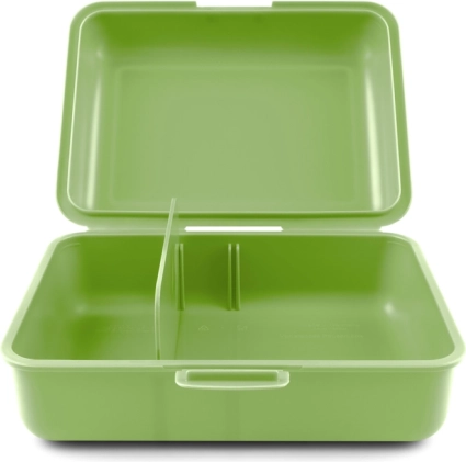 In de box bevindt zich een praktische scheidingswand, die het mogelijk maakt om verschillende soorten voedsel te scheiden en beter te organiseren.