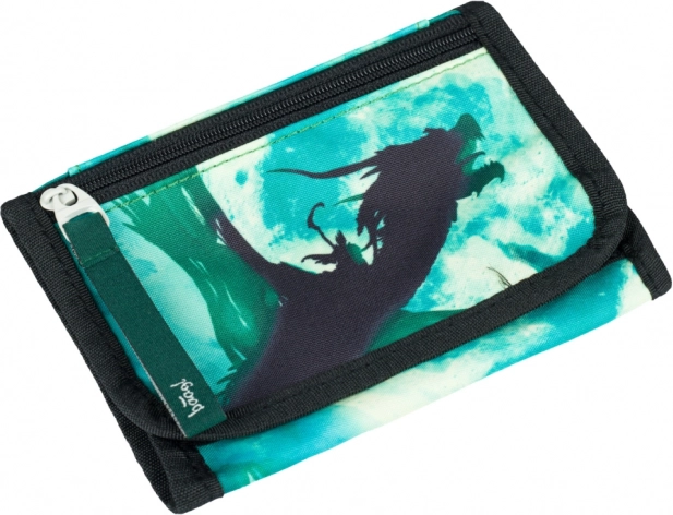 De portemonnee is verfraaid met een silhouet van een draak op wolken, wat zorgt voor een uniek uiterlijk.