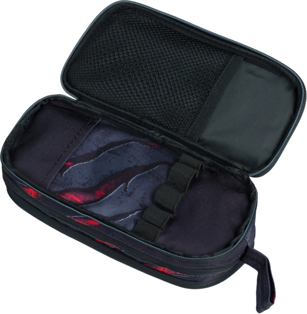 De etui is voorzien van drie afzonderlijk afsluitbare compartimenten met ritssluiting, wat zorgt voor veilige opslag van al je schoolbenodigdheden. Dankzij de praktische lus is hij gemakkelijk mee te nemen of op te hangen.