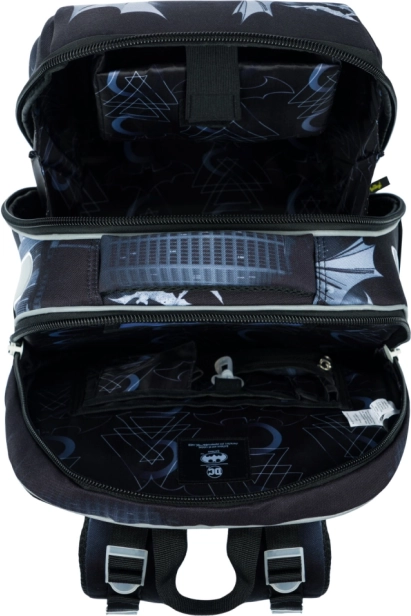 Lichte en stabiele schooltas voor eersteklassers en jonge schoolkinderen met het motief BATMAN Dark City. Biedt een stevige, verstevigde body voor maximale bescherming van schriften, een indeling met twee compartimenten voor overzichtelijk dragen, ademende rug met Air Ergo Adjustable systeem en reflecterende elementen voor veiligheid. Laag gewicht van slechts 1000 g, inhoud 23 l en een praktische organizer voor alles wat nodig is voor school.