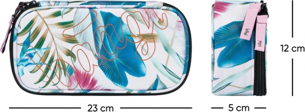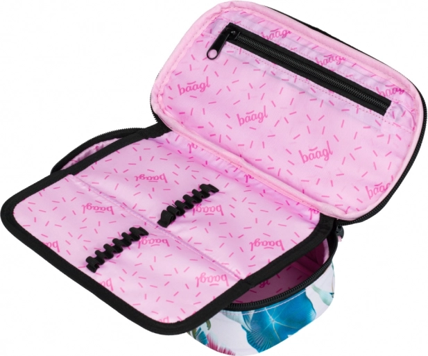 De populaire BAAGL etui met modern design van tropische bladeren is een ideale keuze voor school en buitenschoolse activiteiten. Dankzij de stevige textiele uitvoering en de kwaliteitsrits blijven alle schrijfwaren veilig en overzichtelijk geordend. Het interne uitklapbare tussenpaneel met elastische lussen maakt snelle toegang tot pennen en potloden gemakkelijk, terwijl het ritsvak ruimte biedt voor kleinigheden zoals gummen of puntenslijpers.