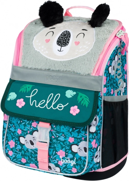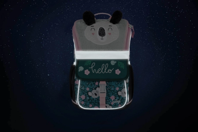 Stevige waterafstotende materialen en een stabiele bodem houden de tas in vorm en rechtopstaand. Reflecterende elementen verhogen de zichtbaarheid van het kind; het speelse koala-design met harige hanger maakt elke schooldag leuker.