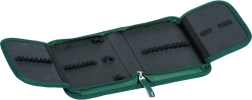 De éénlaagse oplossing met twee kleppen, elastische houders en vakjes houdt alles netjes op zijn plek.