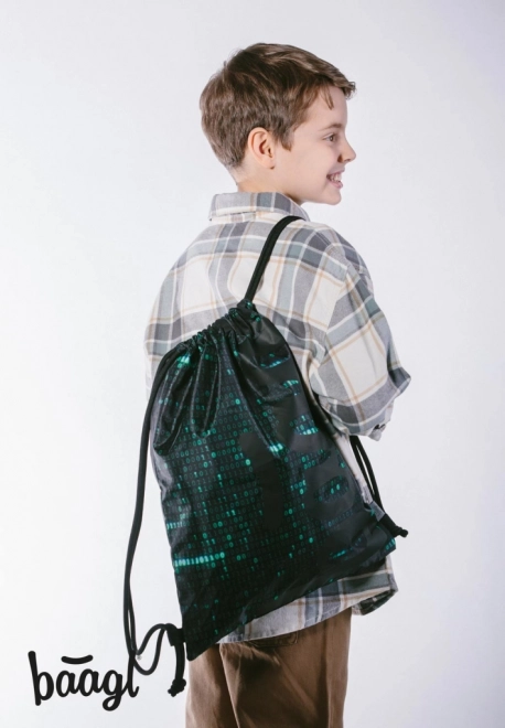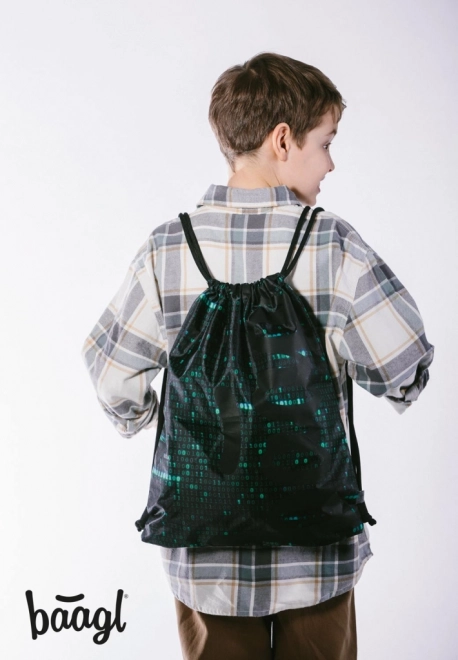 De Baagl zak met unieke binaire code in zwart en groen is ideaal voor dagelijks gebruik, of het nu voor schoenen of andere kleinigheden is. Zeer duurzaam en gemakkelijk wasbaar materiaal zorgt voor een lange levensduur: