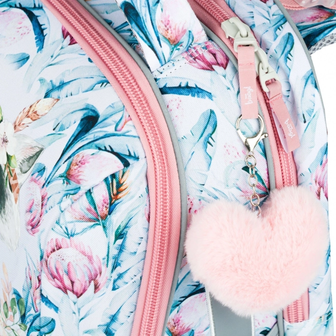 De stevige constructie van de rugzak beschermt alle inhoud en biedt stabiliteit. Dankzij een reeks reflecterende elementen is het kind altijd goed zichtbaar op weg naar school. De rugzak is ook voorzien van een stijlvolle, pluizige hanger die een trendy uitstraling geeft.
