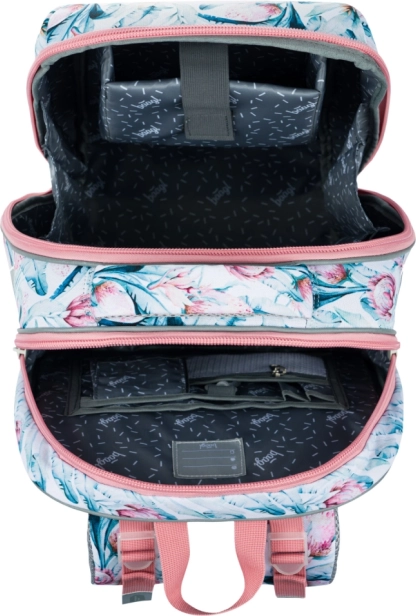 De rugzak met verstevigd lichaam functioneert als een beschermend pantser. Twee compartimenten en een organizer binnenin bieden voldoende ruimte voor alle schoolbenodigdheden.