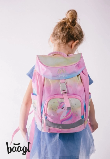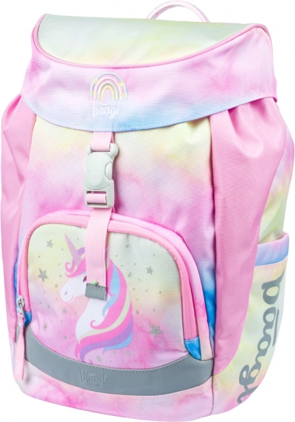 De Baagl Airy Rainbow Unicorn is een geweldige metgezel voor dagelijkse schoolavonturen. Deze rugzak biedt ergonomisch gevormde rug met AIRFLOW ERGO SYSTEEM, dat zorgt voor ademend vermogen en comfort. Dankzij de volledig verstelbare schouderriemen kan hij aan elk lichaamstype worden aangepast, en borst- en heupriemen zorgen voor een gelijkmatige gewichtsverdeling.