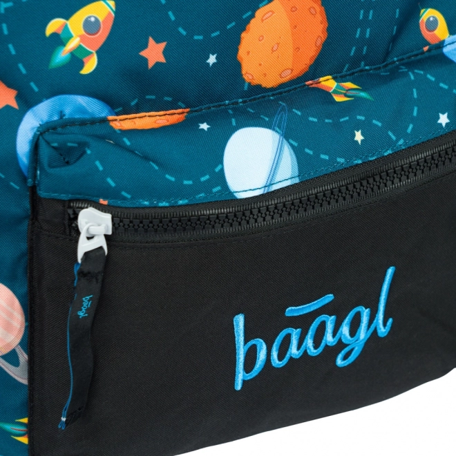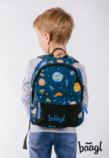 Kinderen worden verliefd op het betoverende motief met planeten en raketten. Het hoofdvak biedt plaats aan een tussendoortje en een favoriet speelgoedje, het voorvak met rits is ideaal voor kleinigheden, zakdoekjes of sleutels.