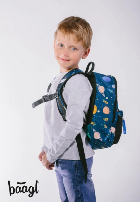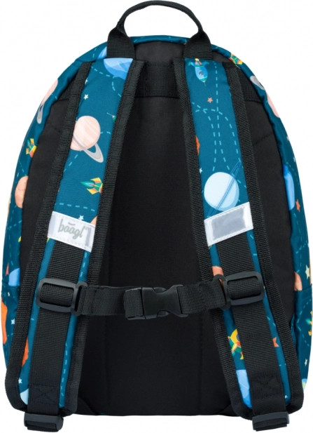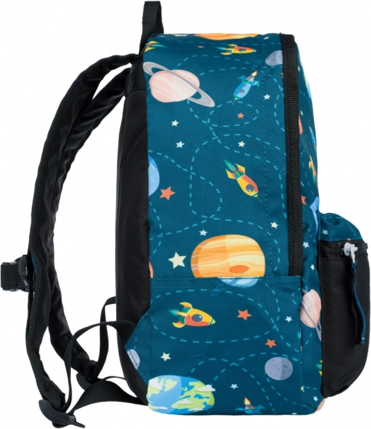 Lichte en duurzame kleuterrugzak met ruimtemotief spreekt kinderen én ouders aan. Biedt één hoofdvak en een voorvak voor kleinigheden, gewatteerde rug, verstelbare gewatteerde schouderbanden, reflecterende elementen en waterbestendig materiaal voor veilig en comfortabel dragen naar de kleuterschool en op uitstapjes.