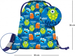 Praktische kleuterschoolzak BAAGL met het Monsters-motief, ideaal voor pantoffels, gymspullen of kleinigheden. Gemaakt van een stevig, afwasbaar materiaal en dankzij het snoersluiting met sterke koorden sluiten kinderen hem eenvoudig en dragen hem comfortabel op de rug.