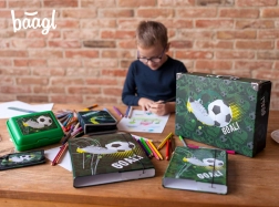 Zoek je een duurzame én stijlvolle schoolkoffer voor het vervoeren van knutselspullen, schriften of andere kleinigheden? De opvouwbare BAAGL schoolkoffer met voetbalmotief overtuigt niet alleen door het uiterlijk, maar ook door functionaliteit. Stevig gelamineerd karton en metalen hoeken zorgen voor een lange levensduur, het metalen beslag geeft stabiliteit en de klassieke sluiting houdt de inhoud veilig.
