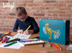 Praktische en duurzame koffer voor scholieren en creatieve kinderen. Dankzij de slimme drukknoopjes klap je hem gemakkelijk uit, bewaar je hem “plat” en vouw je hem op elk moment weer in elkaar. Het gelamineerde oppervlak met verstevigde hoeken weerstaat dagelijks gebruik en het aantrekkelijke T‑REX‑motief geeft elke schooluitrusting stijl.