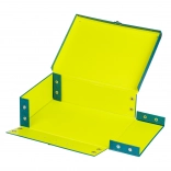 Het metalen handvat en de betrouwbare gesp houden alles op zijn plaats – van teken- en knutselspullen tot schriften en kleine accessoires. Het interieur in opvallend geel zorgt voor uitstekend overzicht van de inhoud. Ideaal als opbergdoos voor in de kamer en als draagbare koffer voor school of clubjes.