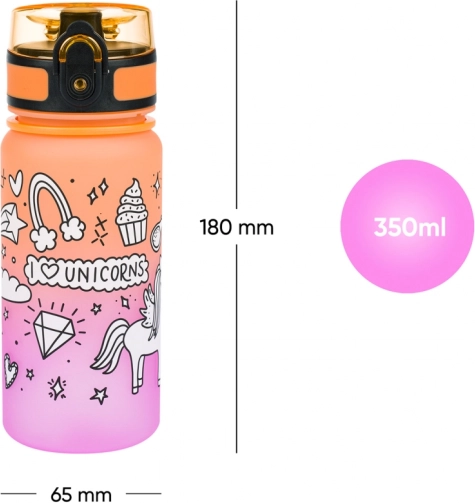 De inhoud van 350 ml met praktische draaglus is ideaal voor school, clubs en uitstapjes. Het kleurverloop en het eenhoornmotief spreken kinderen aan.