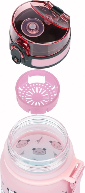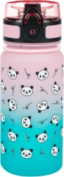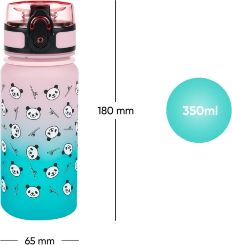 Gecertificeerd tritan neemt geen geuren op, is veilig voor de gezondheid (vrij van BPA, PVC en ftalaten) en schokbestendig. De kleurrijke roze‑turquoise overgang met vrolijke panda’s motiveert tot regelmatig drinken en dankzij de draaglus is de fles altijd binnen handbereik.