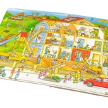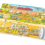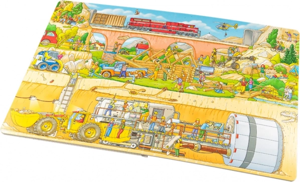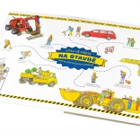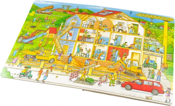 In de stad is altijd wat te doen – er wordt gegraven, gerepareerd, gebouwd en opgeknapt. Kinderen zoeken op de pagina's naar vrachtwagens, betonmixers, graafmachines, kranen en vorkheftrucks, ontdekken het werk van ambachtslieden en zien hoe voorman en bouwleider overal op toezien. Ook de architect, fotograaf en tuinman ontbreken niet, evenals tal van figuurtjes met hun eigen microverhaaltjes. Dit kinderboek over de bouw is een geweldig zoek- (wimmel)boek dat op natuurlijke wijze taal en aandacht ontwikkelt.
