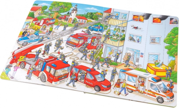 Ontdek een boeiend prentenboek voor kinderen dat de wereld van de brandweer tot leven brengt met gedetailleerde illustraties en spannende reddingsscènes. Brandweertechniek, sirenes en inzetten, het leven op de kazerne en redding van dieren en mensen – allemaal in één groot boek dat de verbeelding, de woordenschat en het observatievermogen stimuleert.