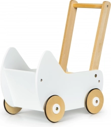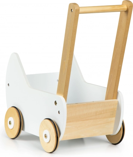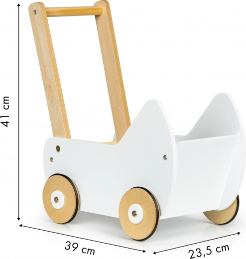 Houten poppenwagen ECOTOYS biedt geweldig speelplezier voor elk meisje dat graag voor haar poppen en knuffels zorgt. De wagen maakt het mogelijk om moedertje te spelen en stimuleert de kinderlijke verbeelding. Antislip rubberen banden op de wielen beschermen de vloer tegen krassen.