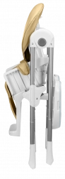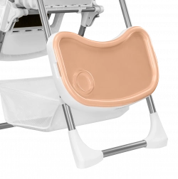 De veiligheid wordt gewaarborgd door vijfpuntsriemen, een versterkte constructie en antislipvoetjes. Praktische details zoals een afneembare voetensteun, een grote mand voor speelgoed en accessoires en wieltjes voor het verplaatsen maken het dagelijks gebruik gemakkelijker. Na het eten klap je de stoel in enkele seconden in tot een ruimtebesparende breedte van circa 30 cm.