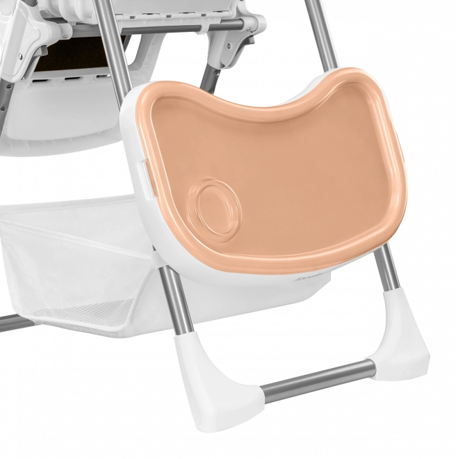 Praktische en veilige kinderstoel voor dagelijks voeren en spelen. Biedt 6 hoogtestanden, een verstelbare rugleuning, een schuifblad met 3 posities en vijfpuntsgordels. De bekleding van ecoleer is gemakkelijk schoon te maken, er is een grote mand voor accessoires, wieltjes voor eenvoudig verplaatsen en snel inklappen tot een compact formaat.