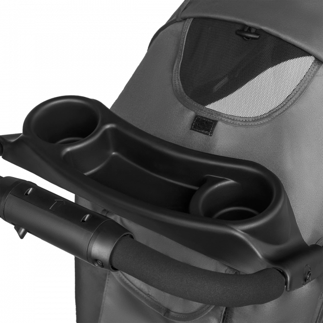 - Organizer aan de duwbeugel met plek voor een drankje en kleine spullen voor ouders.